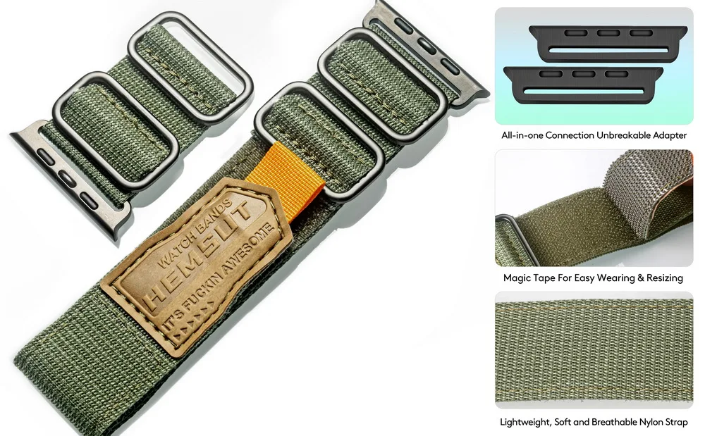 The strap is made of high quality nylon and cowhide, good breathability and softness make wearing become more comfortable, while the connector we use one-piece molding, with very high reliability. Love your Apple Watch, please give it a good strap.