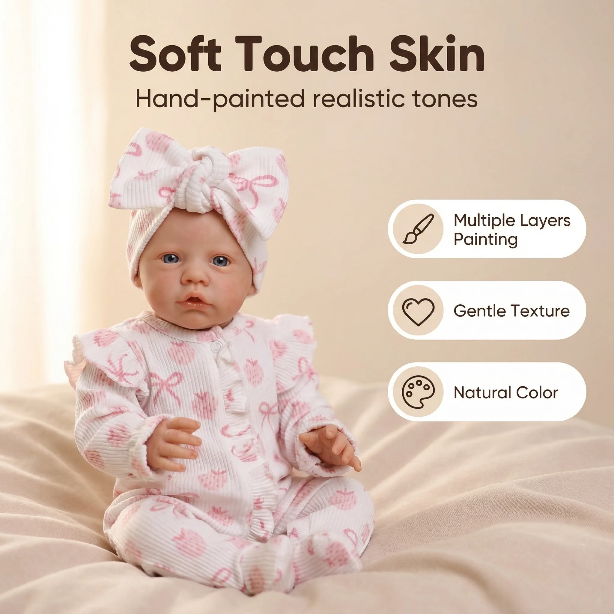 Material and structure:soft cloth body, much more life and soft, very cuddly, just like the real baby when you hug her/him