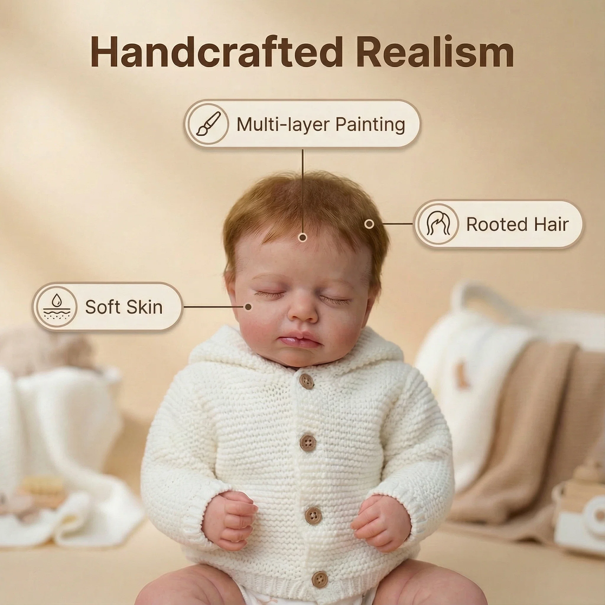 Material and structure: soft cloth body, much more life and soft, very cuddly, just like the real baby when you hug her / him.
