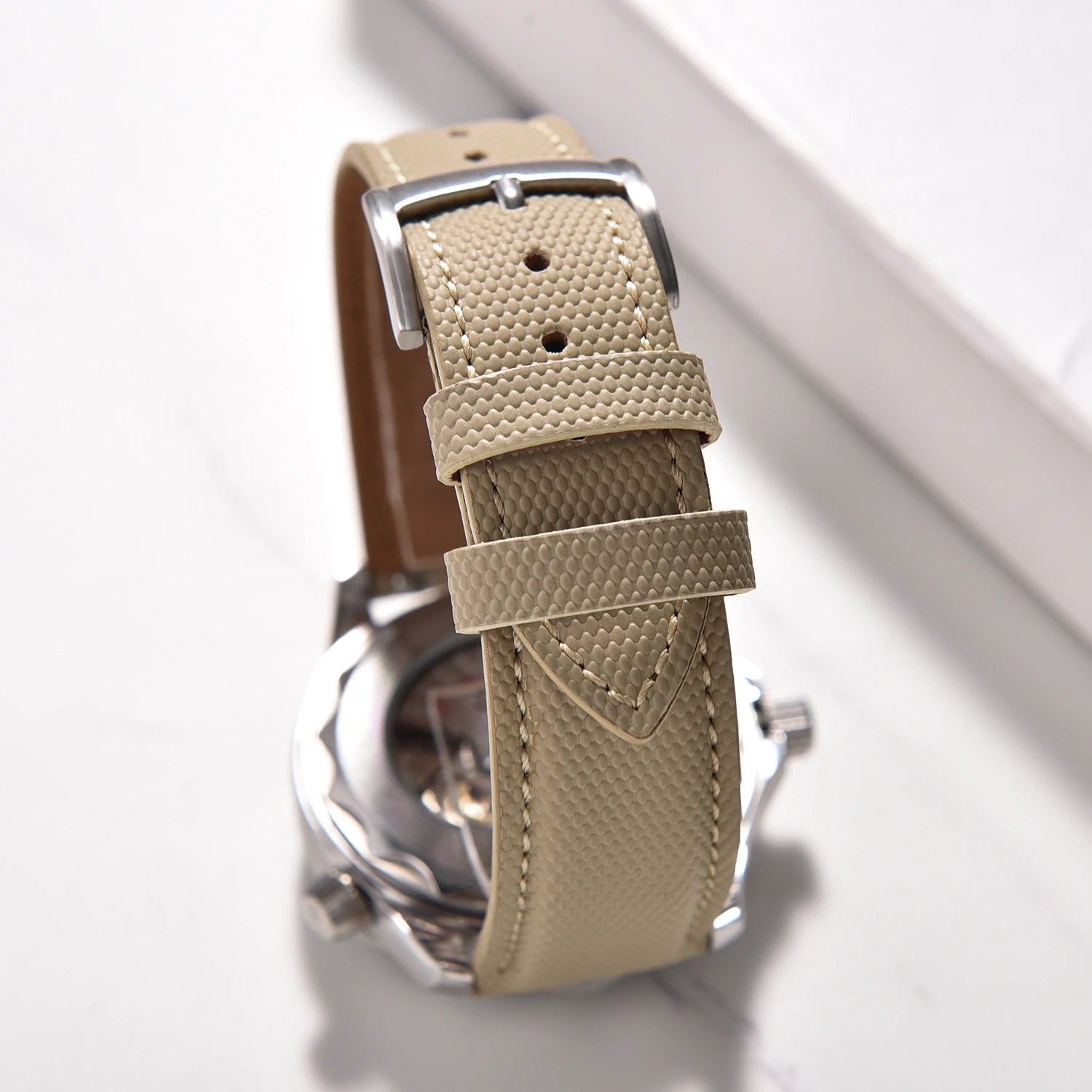 New Design Coated Sailcloth Surface+Leather Bottom Surface Double Layer Material Watch Strap