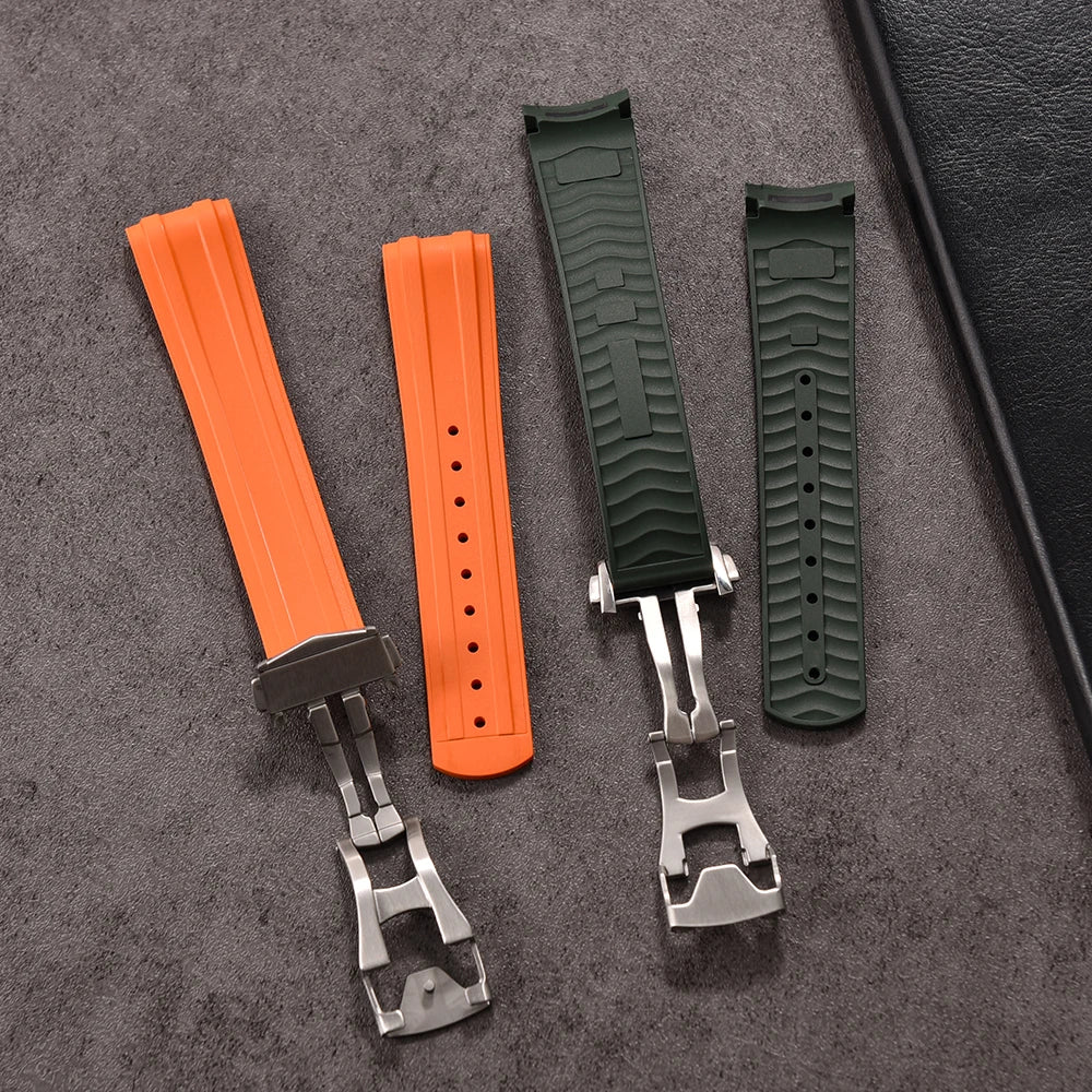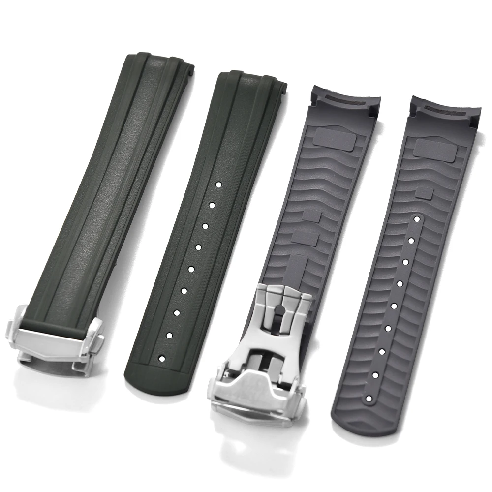 New Design FKM Strap 20mm Fluororubber Curved End For Omega Seamaster 300 PFAS Certification With Original Fold Buckle WatchBand