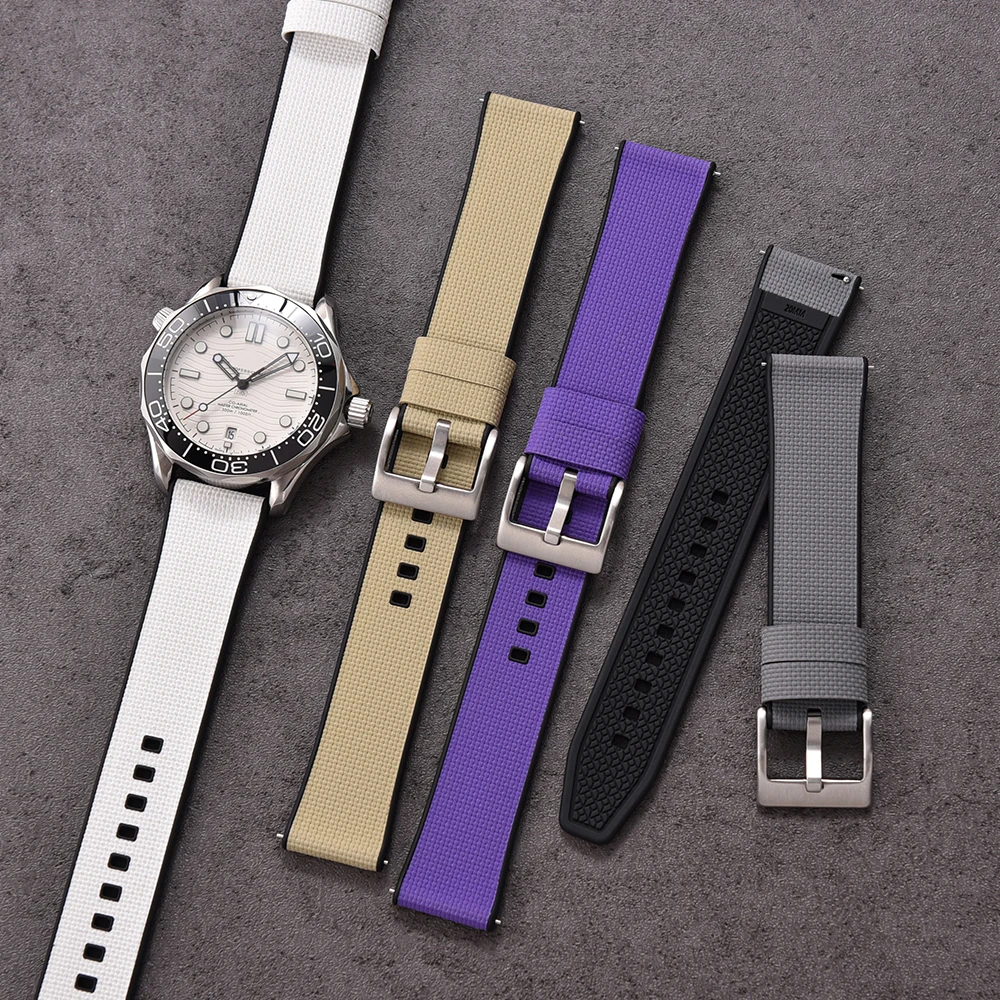 Premium Grade 18-19-20-21-22-24mm FKM Texture Watch Band Quick Release FKM Rubber And FKM Hybrid Watch Strap For Diving Watches