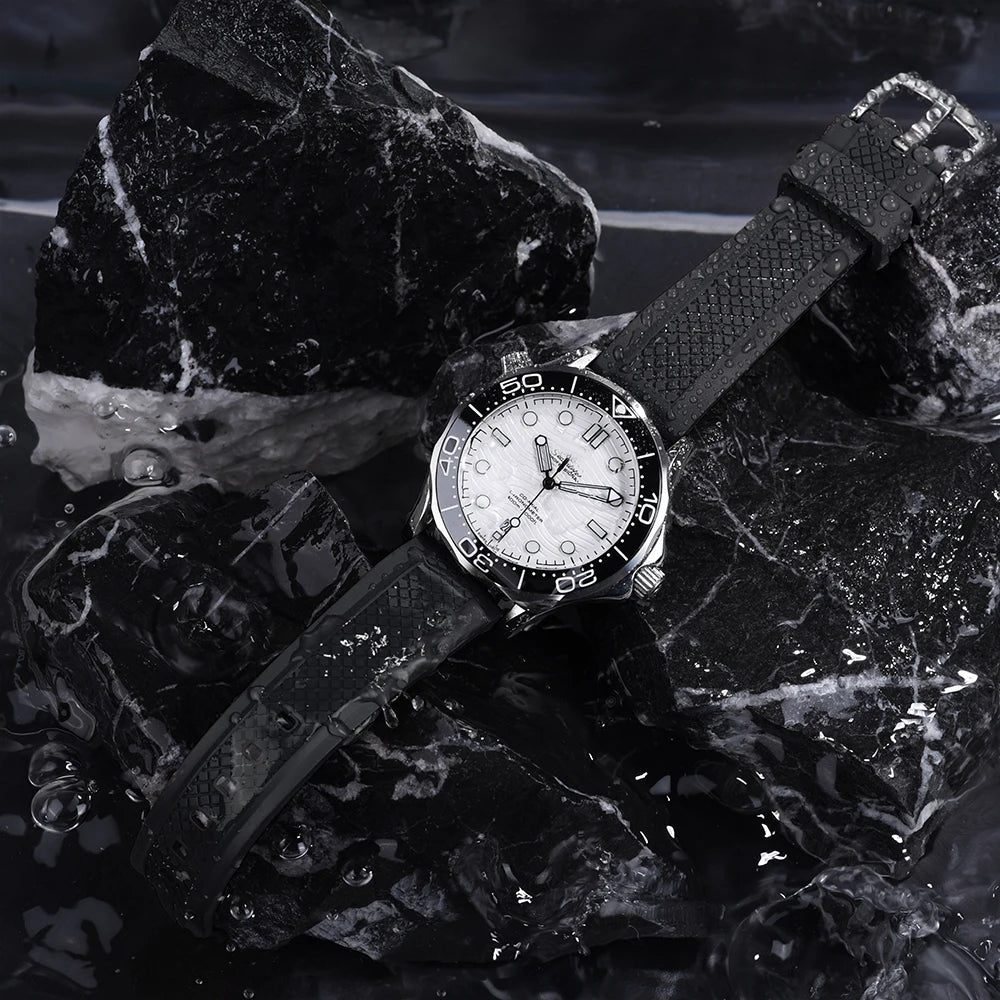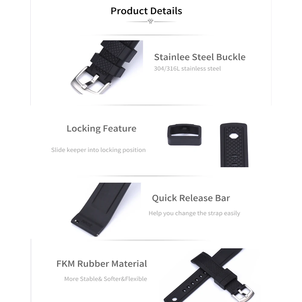 Quality Vulcanized FKM Rubber Watch Strap 20mm 22mm Black Blue Wristband Slide Keeper Ring With Quick Release Sport Watchband