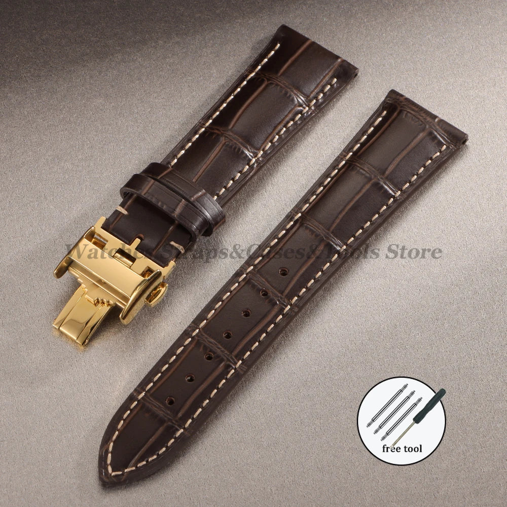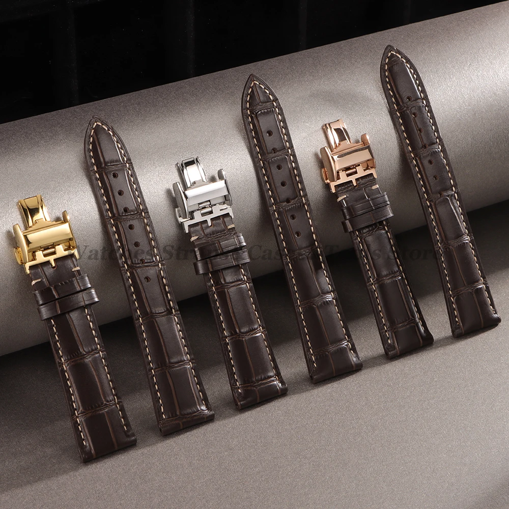 18mm 19mm 20mm 21mm 22mm Cowhide Leather Watch Strap for Longines Watch Bracelet Universal Butterfly Clasp Wristband Replacement