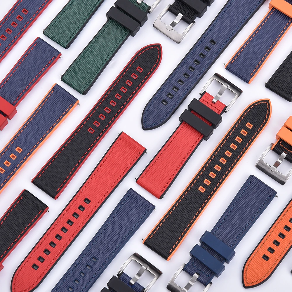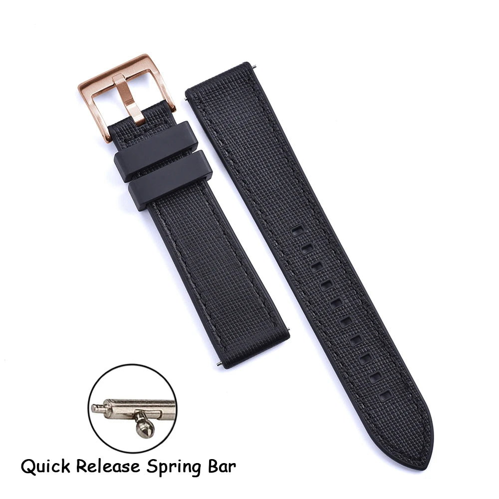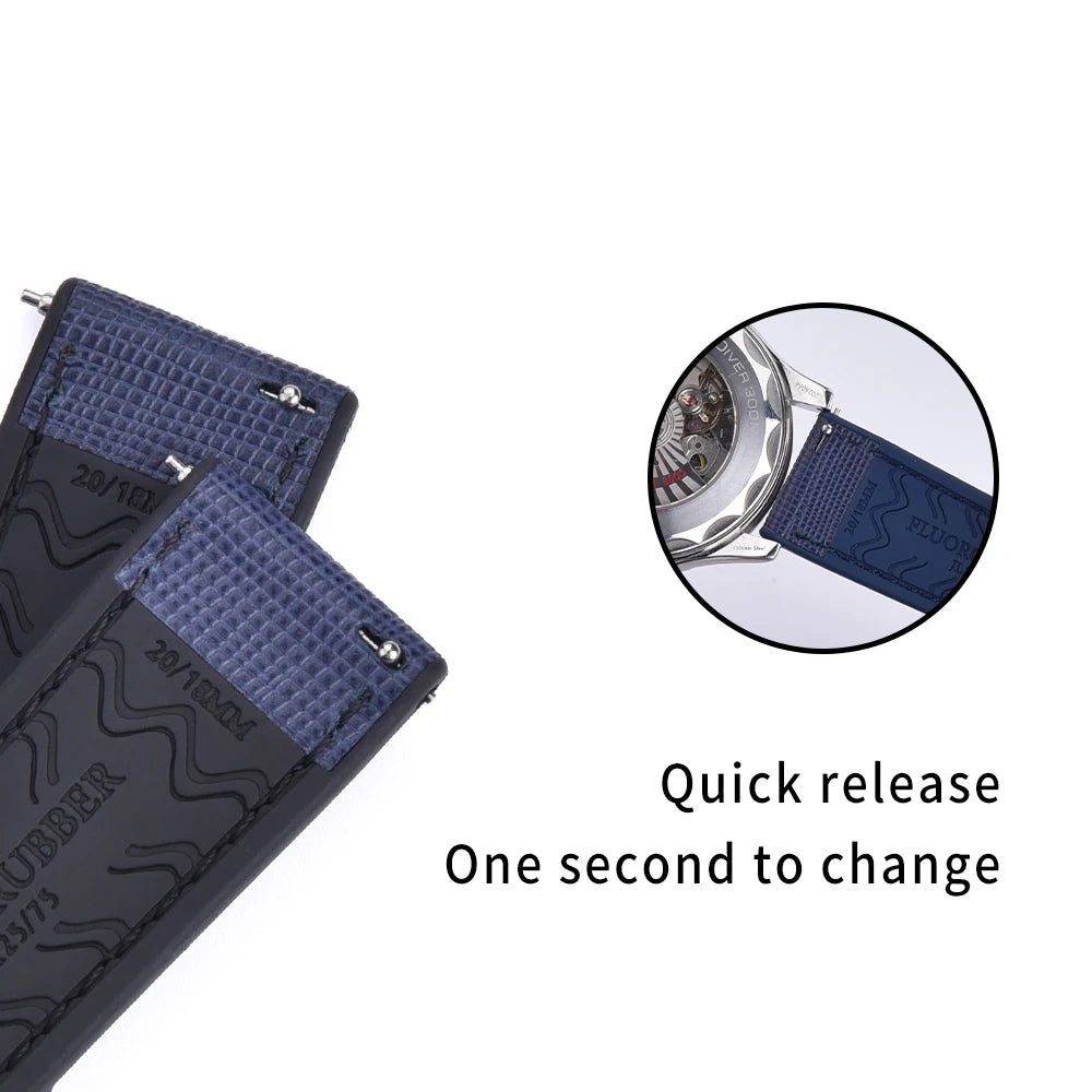 FKM Rubber Strap 20mm22mm Leather Qucik Release Watch Band Universal Women Men Watch Accessories for Omega Seiko Sports Bracelet