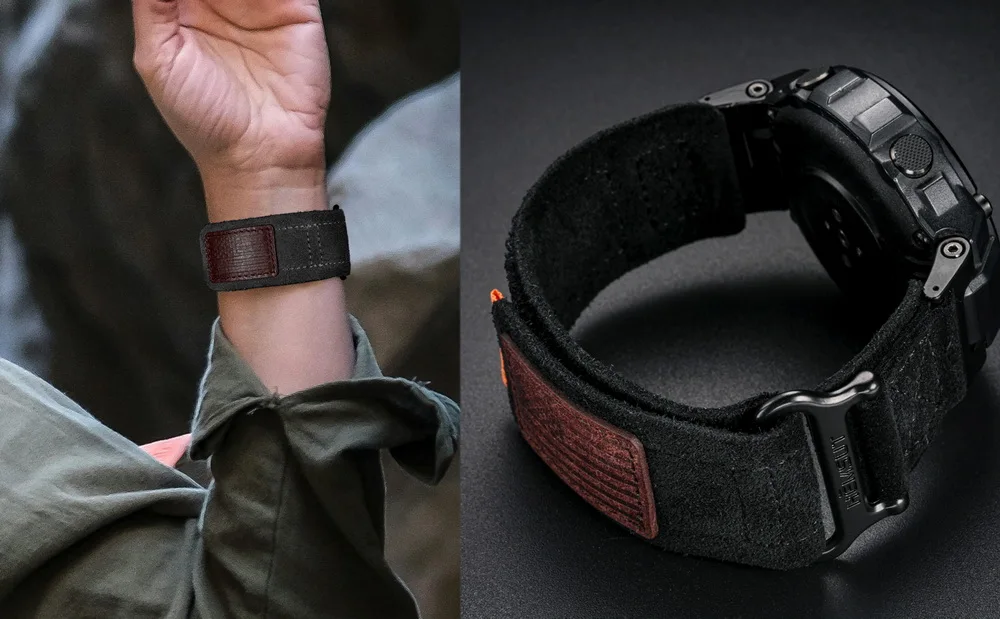 • This is a vintage style strap, he is made of suede leather, which is very soft and feels good on the wrist. The buckle are made of aluminum, which is mainly for lightweight.