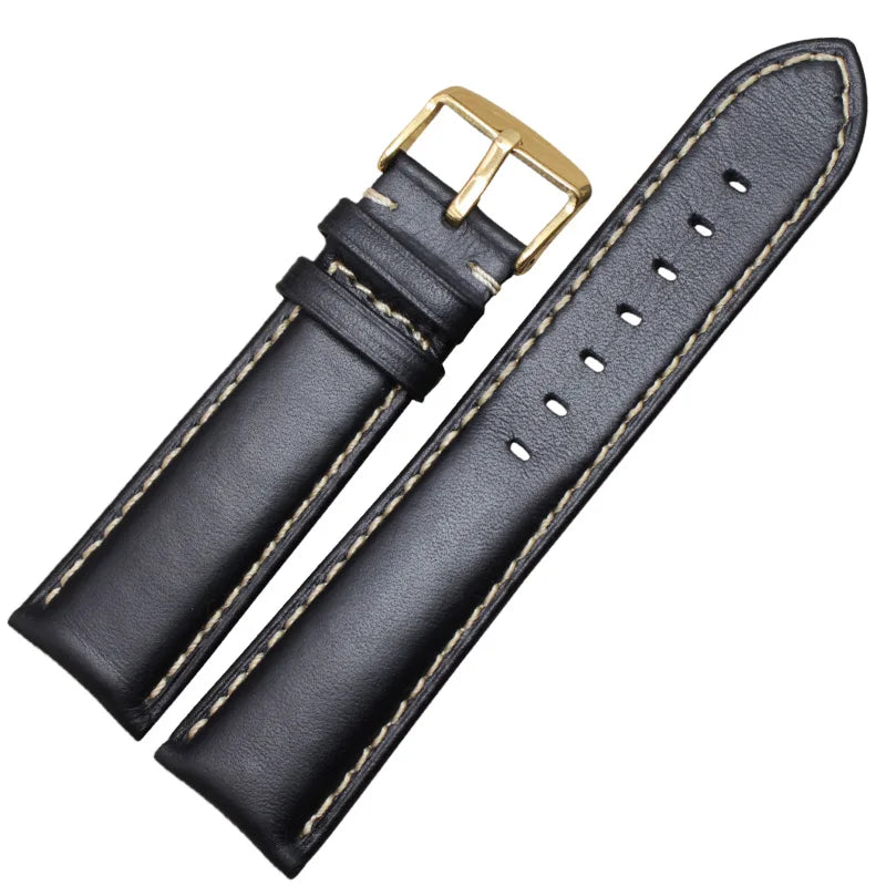 Genuine Leather Watch Band Strap Black Dark Brown 18 19 20 21 22 24mm Watchbands Men Women Polished Buckle Relojes Hombre