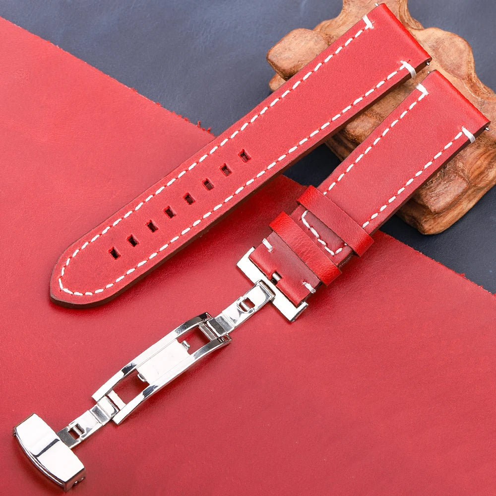 Genuine Leather Watch Strap Bracelet 7 Colors Quick Release Watchband 18 20 22 24mm Bracelet Butterfly Buckle Band
