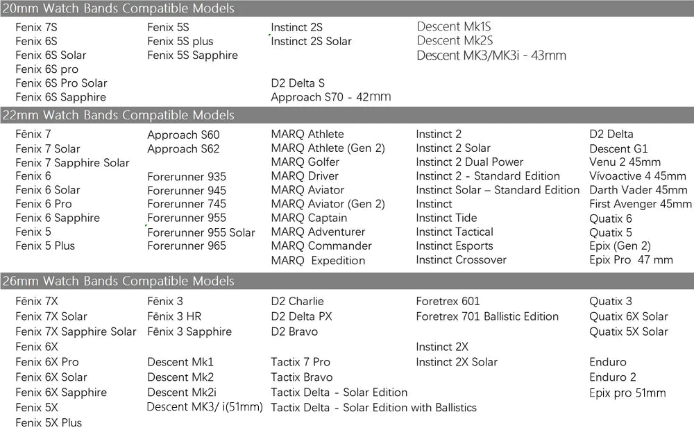 Please note: The strap only works with Garmin watches and amazfit falcon, other watches may not be compatible.
