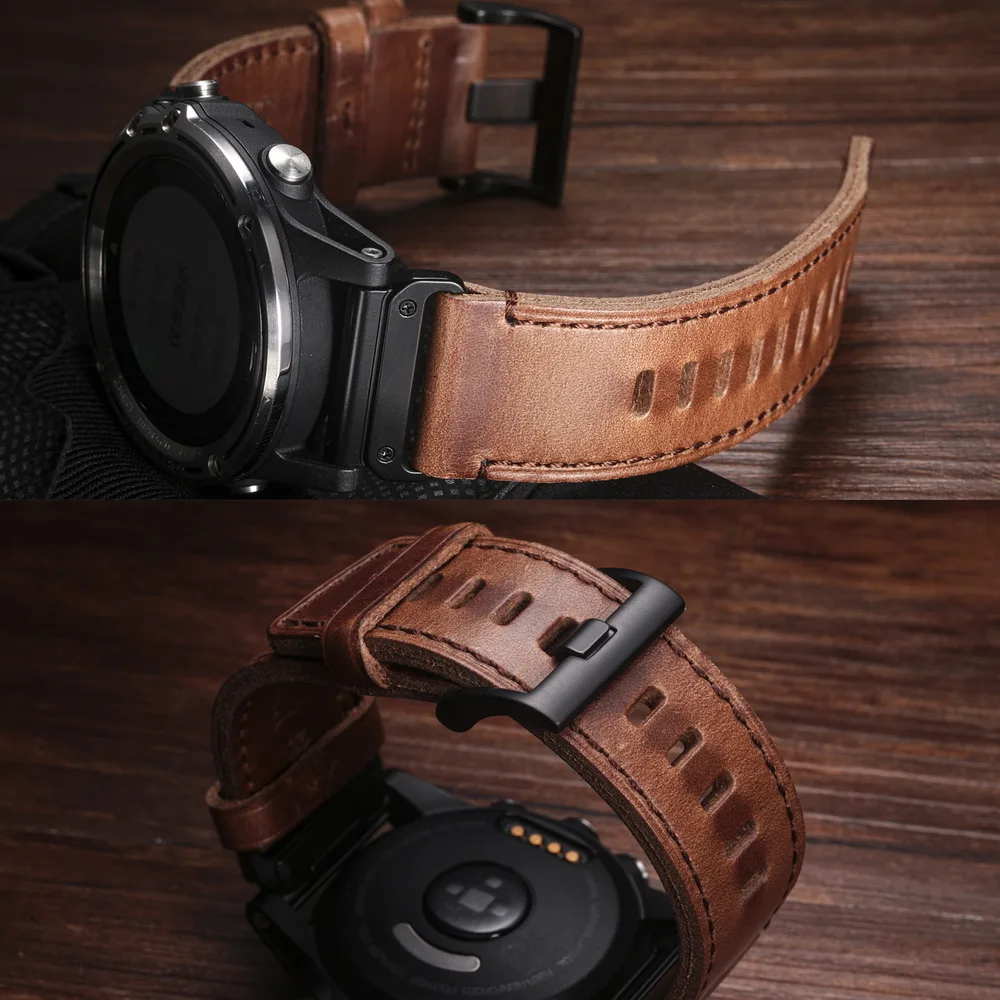 Horween Leather Straps For Garmin Fenix7 Quickfit 22 26mm Business Retro Watch Band Epix MARQ Quatic Tactix Forerunner