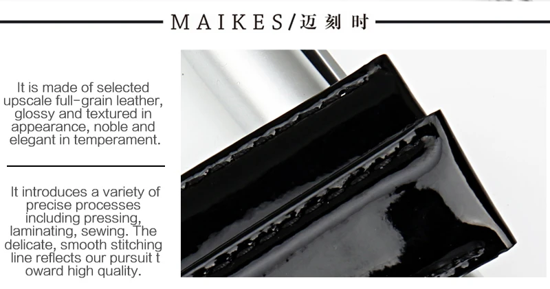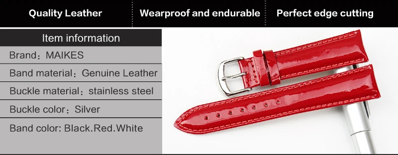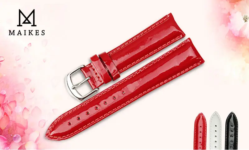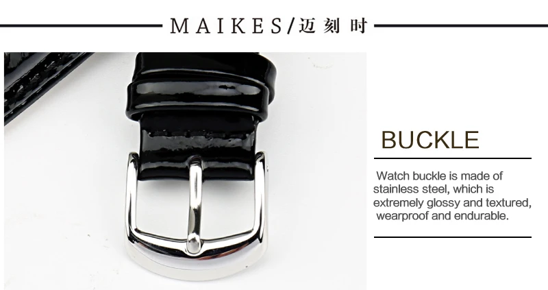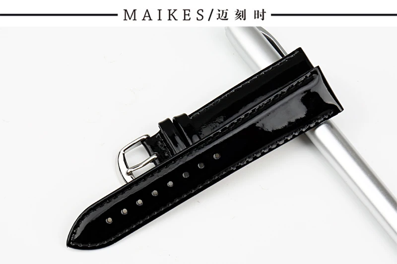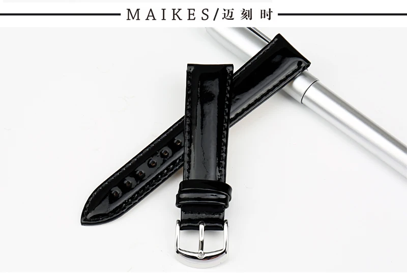MAIKES Genuine Leather Watch Band 12MM 14MM 16MM 18MM 20MM Strap Watch Bracelet Black Patent leather Watchband Watch Accessories