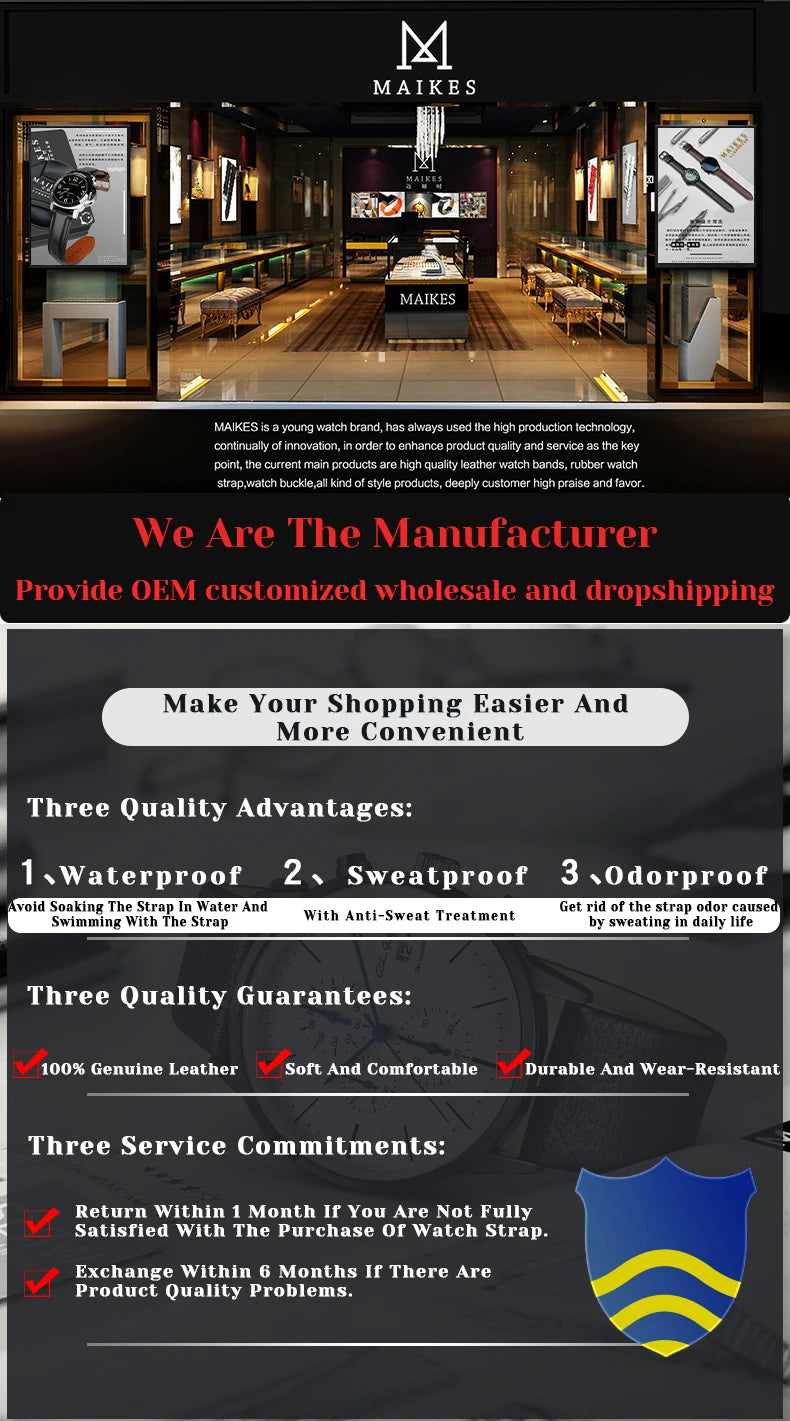 MAIKES luxury Genuine Leather Watch Strap 20mm 22mm Watch Accessories Bands For MIDO TISSOT SEIKO Watch Bracelet