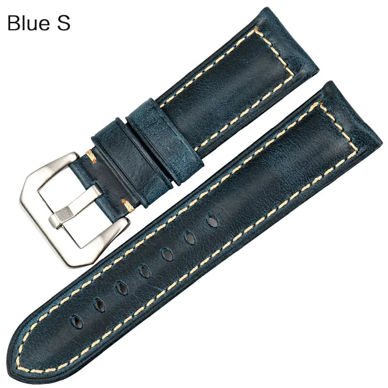 MAIKES Watch Accessories Oil Wax Cow Leather Watch Band 20mm 22mm 24mm 26mm Handmade Watchband Watch Strap For Panerai Watch