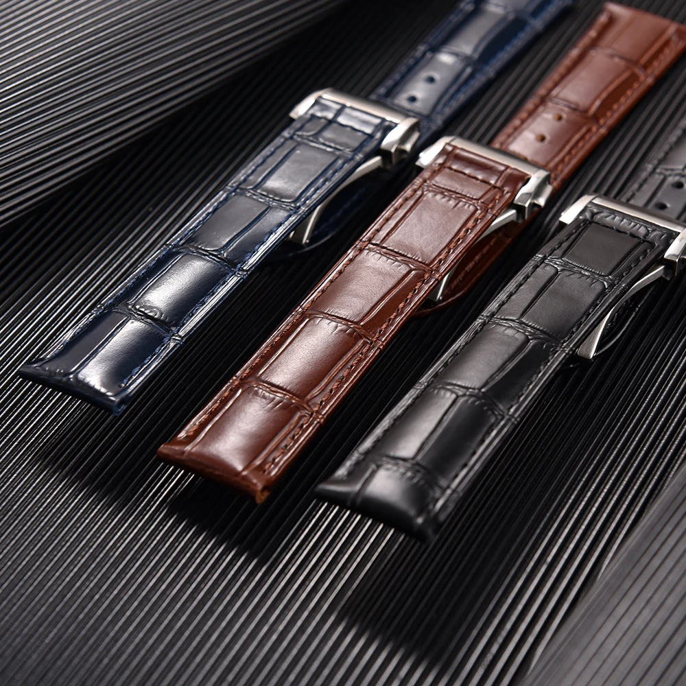 Premium Grade Bamboo Strip Pattern Leather Watch Strap 19mm 20mm 21mm 22mm Perfect Fit Flat End Universal Quick Release Bands