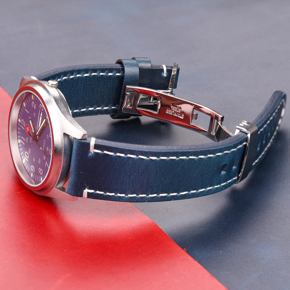 Discover the timeless elegance of BluShark Leather Watch Straps, offering a range from rugged to sporty to refined styles. Crafted for both style and durability, our bands embrace the sophistication and versatility of leather, perfect for every occasion. Enjoy the benefits of comfort, resilience, and a natural patina that enhances over time. Each band features quick release spring bars, ensuring effortless strap changes to match your mood or outfit instantly. Explore our collection and find the perfect BluShark leather watch band to complement your unique style and enhance your timepiece with understated luxury.