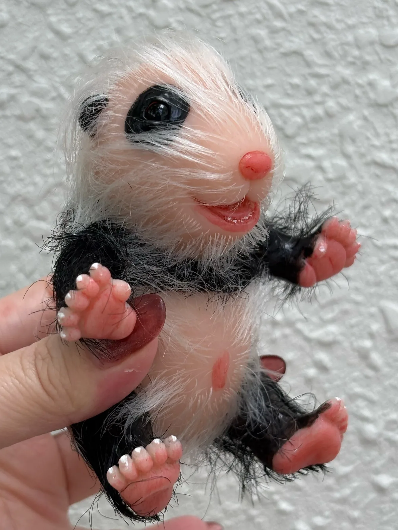 5 Inch Bebe Soft Touch Silicone Panda Lifelike Newborn Baby Doll With Hand-Rooted Hair Reborn Animal